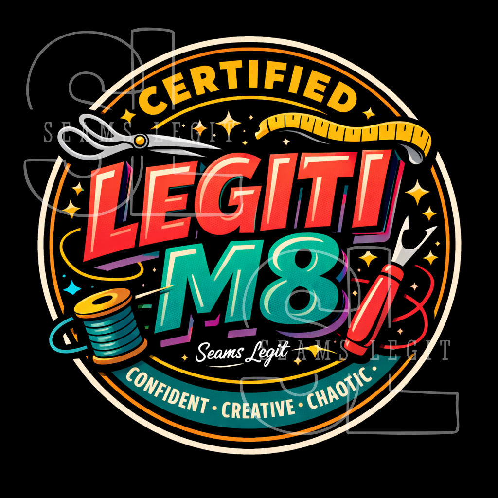Bring a little maker magic to your next project with these LegitiM8-style DTF (Direct to Film) transfers. Designed with the fun, crafty spirit you know and love, these transfers are perfect for adding personality to t-shirts, tote bags, aprons, sewing room gear, and more.