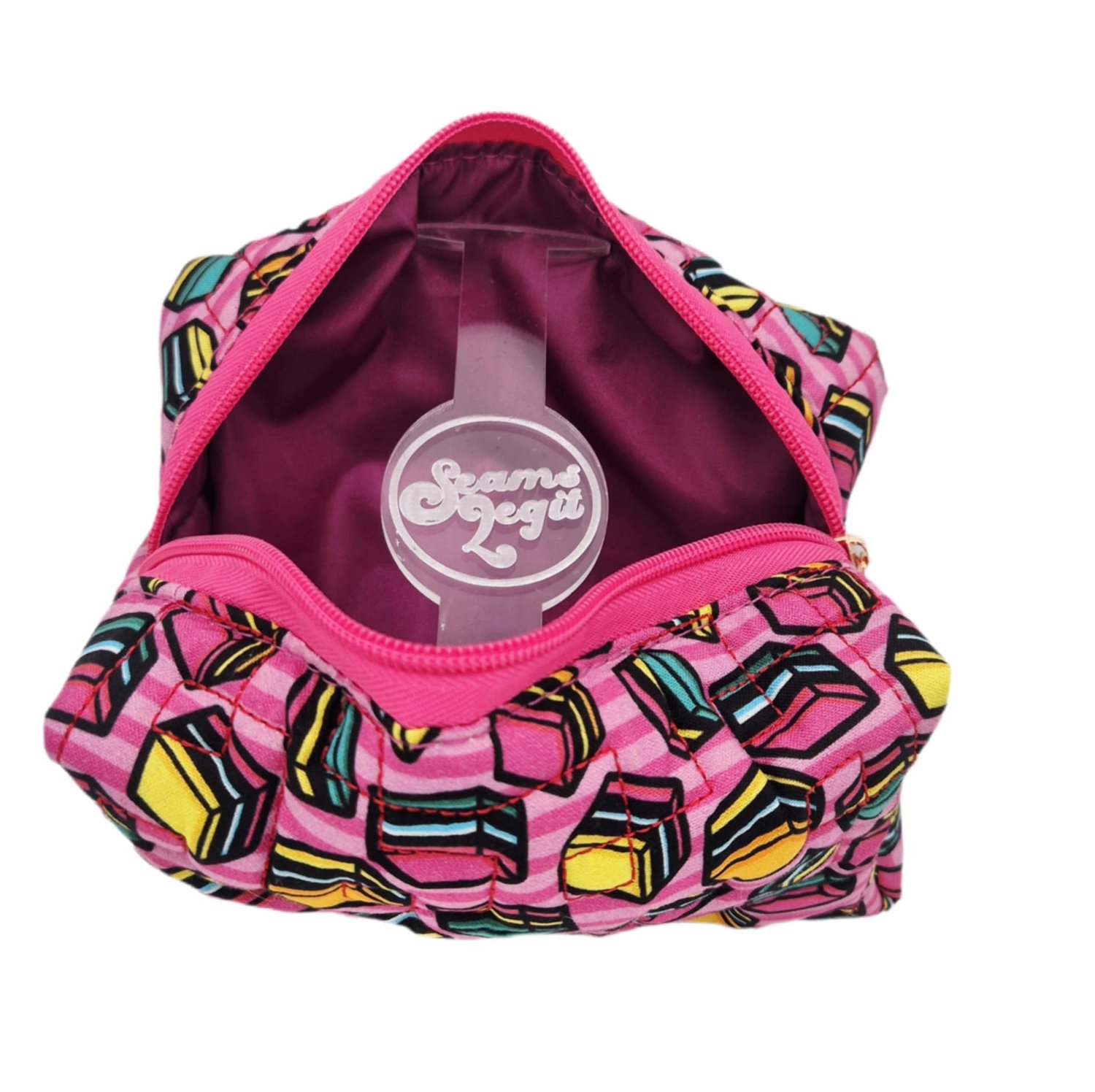A playful mix of colors and patterns, the Licorice Allsorts Cubie is as fun as it is practical. With a waterproof lining and padded sides, it keeps your treasures safe while adding a sweet, cheerful vibe to your day. Measuring 18 cm wide, 11 cm tall, and 8 cm deep, it’s perfect for makeup, crafting tools, or any bits and bobs that deserve a bright, happy home.