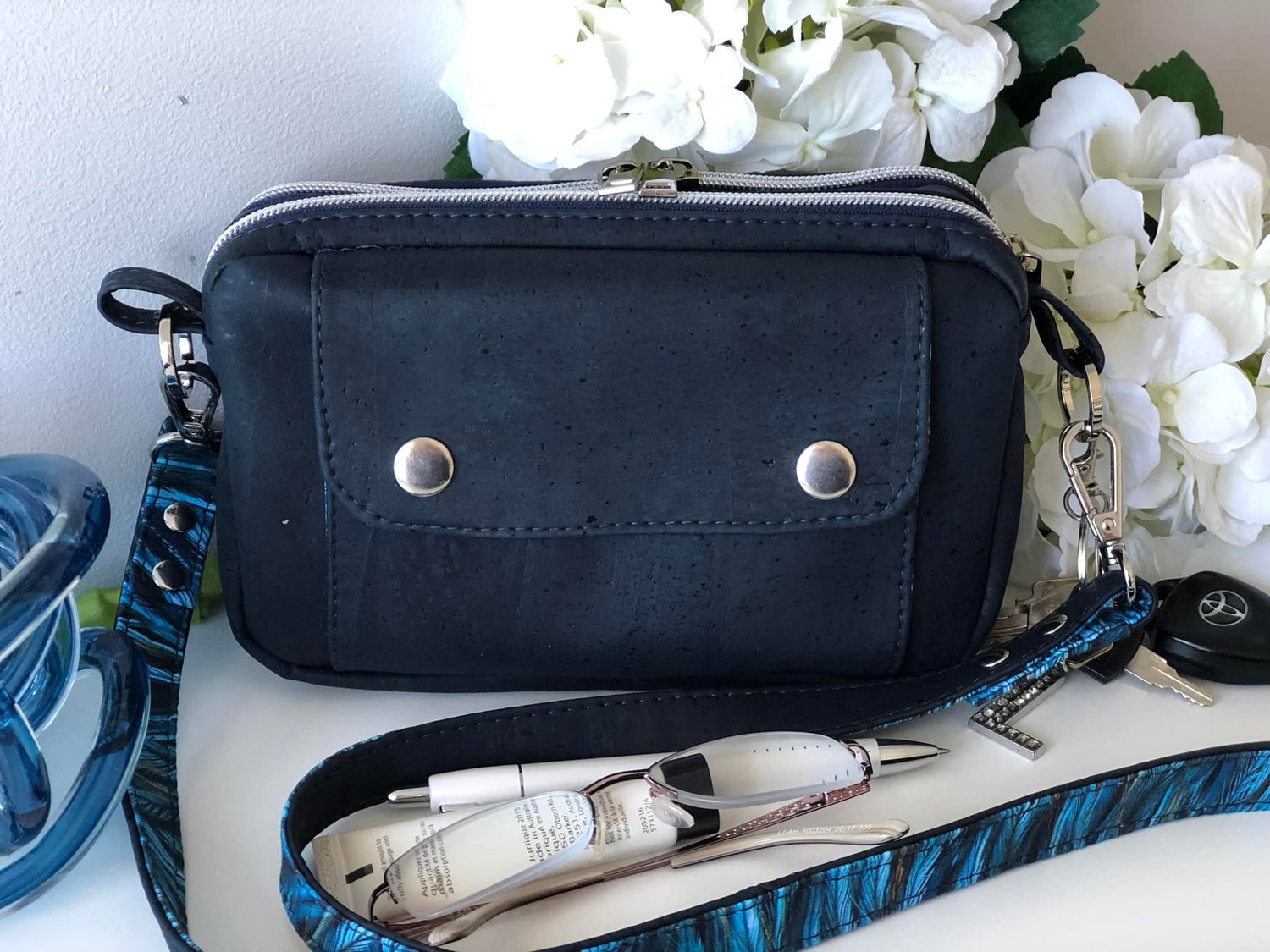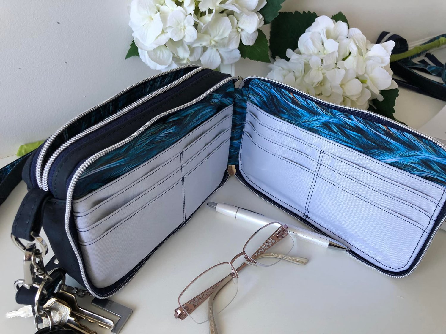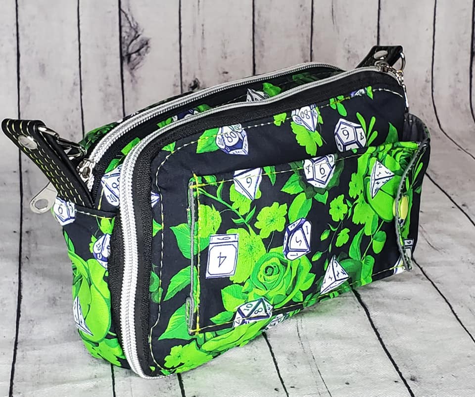 This is Harridan and it is NOT for the feint hearted. It is quite an advanced pattern, but it does make one killer little bag. This is a unisex bag that has removable straps so that you can instead clip it to your belt loops on your pants. It features 12 card slots, 2 slip pockets, a glasses pocket, another exterior pocket and then has a large section to throw in everything else.