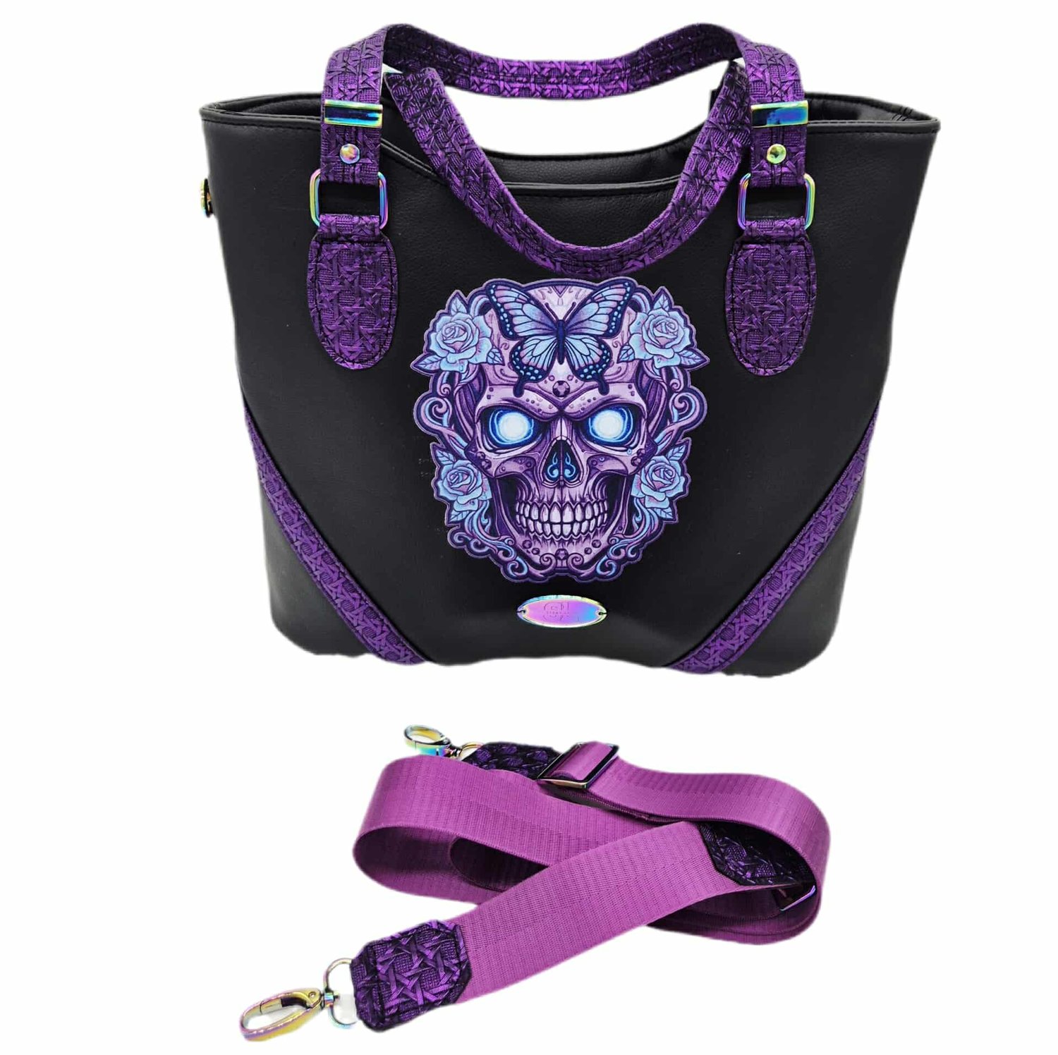 The Purple Skull Empress is a bold, stylish bag designed for those who love a touch of edge in their everyday accessories. Made from high-quality faux leather, it features an exterior zipper pocket for quick-access essentials, an interior zipper pocket to keep valuables secure, and an interior cargo pocket for effortless organisation. A full top zipper closure ensures everything stays safely tucked away, while the rich purple and skull-inspired design gives this bag its fierce, standout personality. Perfect for daily use, gifting, or adding a statement piece to your collection, the Purple Skull Empress is ready to reign supreme.